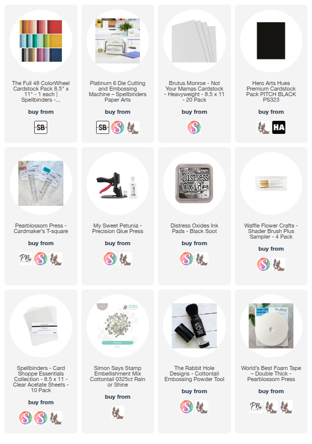 I had no problem with the old stuff! The corner punch (unknown) is ancient as well as the Thank You window (Creative Creations). I also used an old Martha Stewart edge punch to make a little stencil for the pawprints and a Simon Says Stamp Dog Die that's discontinued. Anything else I used is linked below.